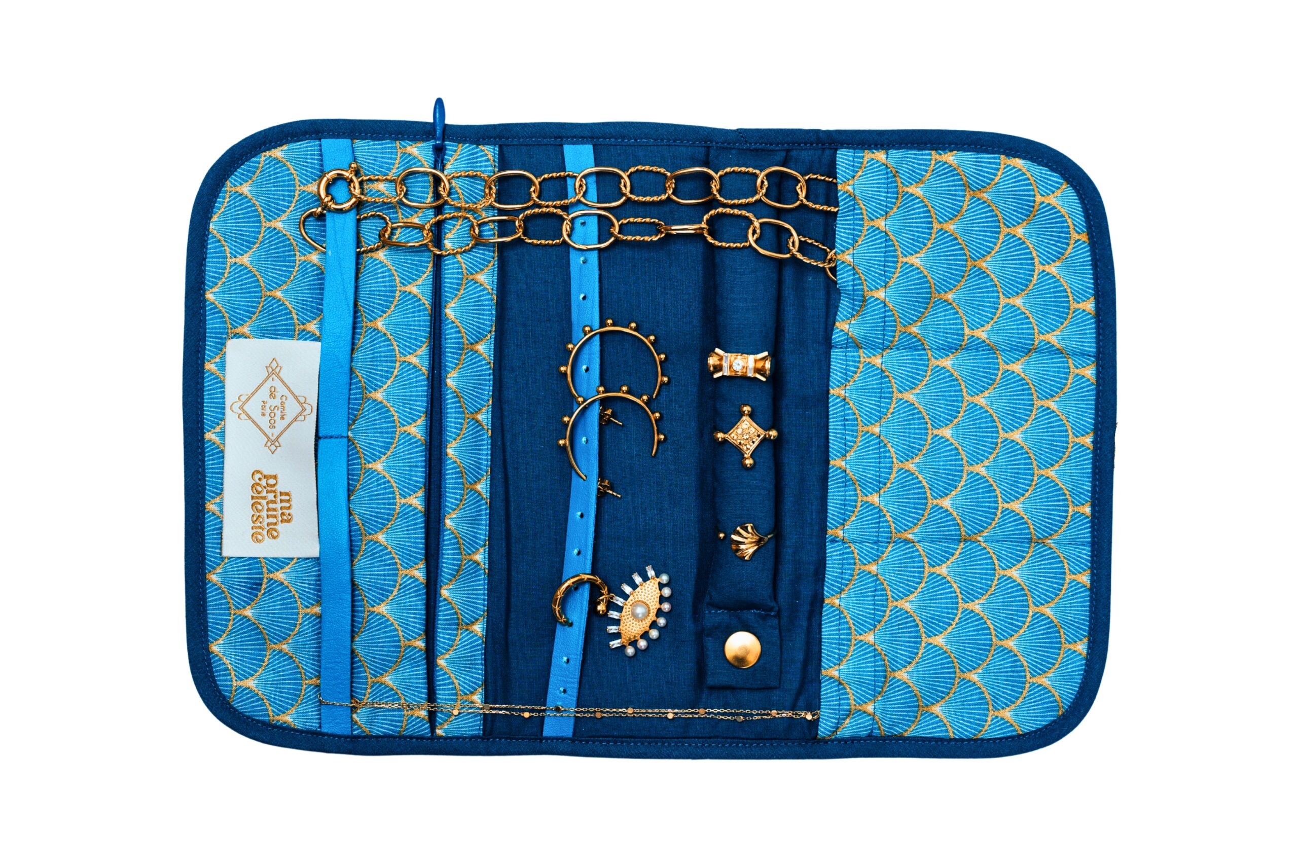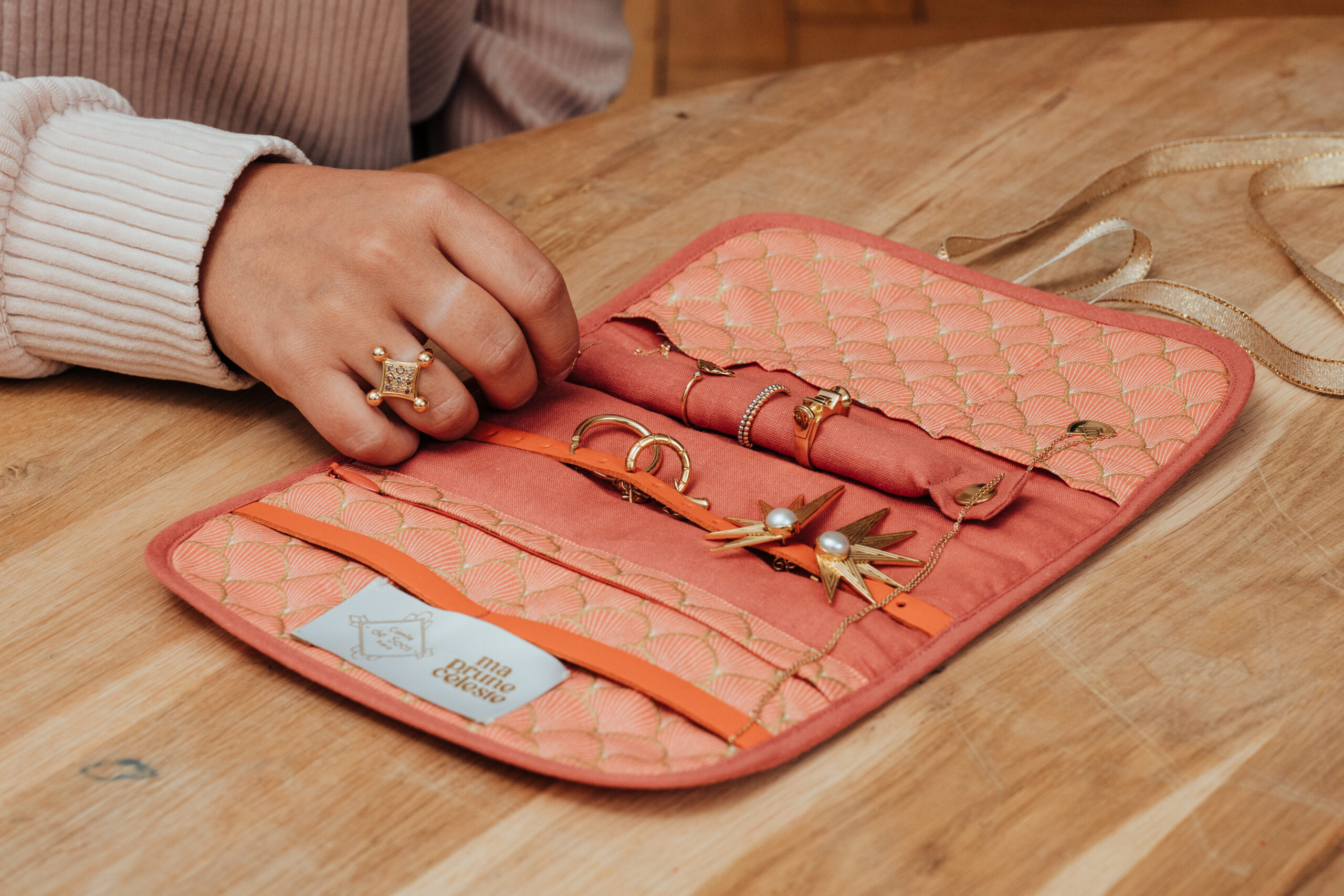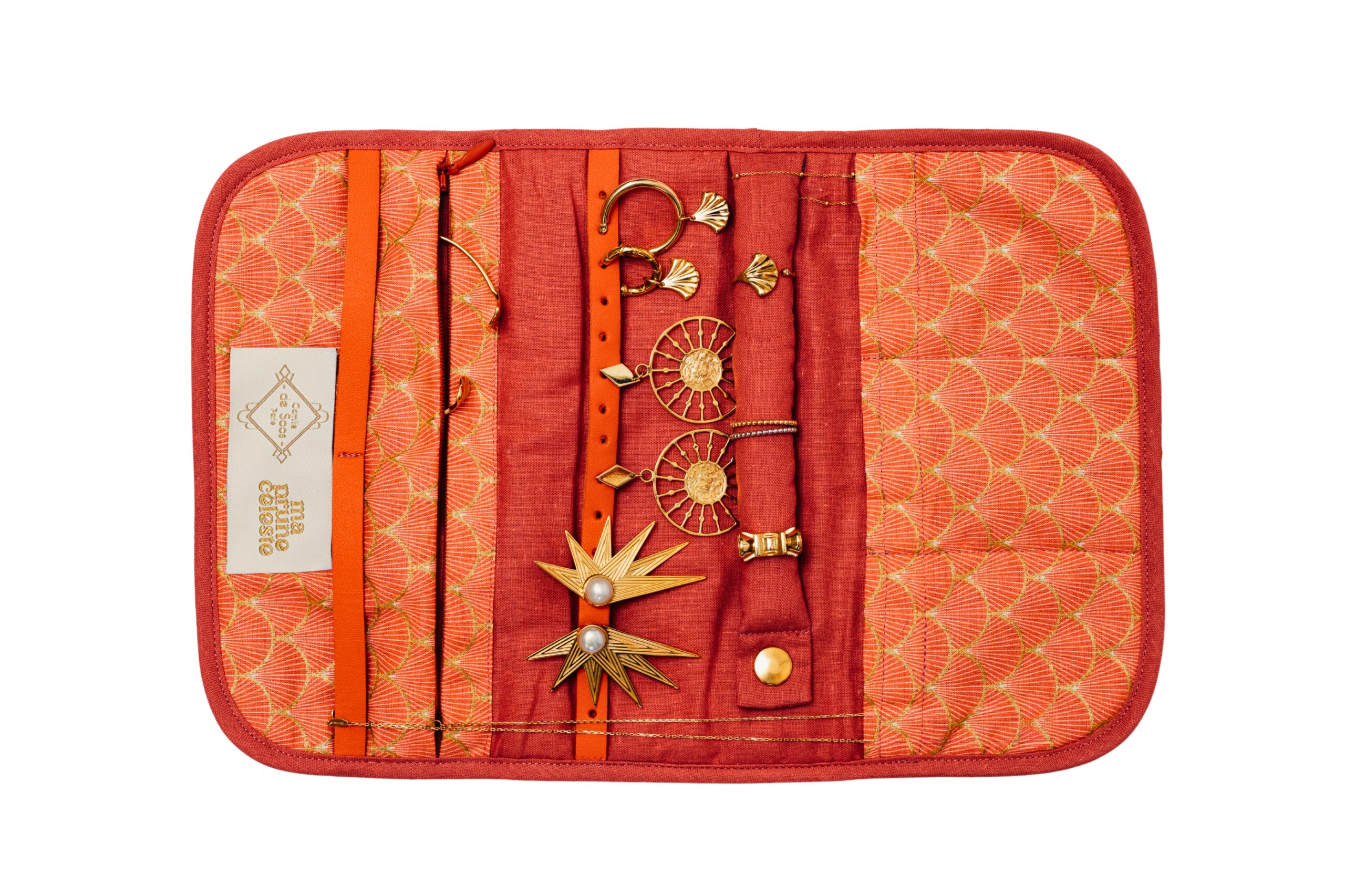 Un véritable écrin de voyage en coton, alliant la douceur des matières choisies par Ma Prune Céleste à la fonctionnalité délicate qu’exige la joaillerie de Camille de Soos.